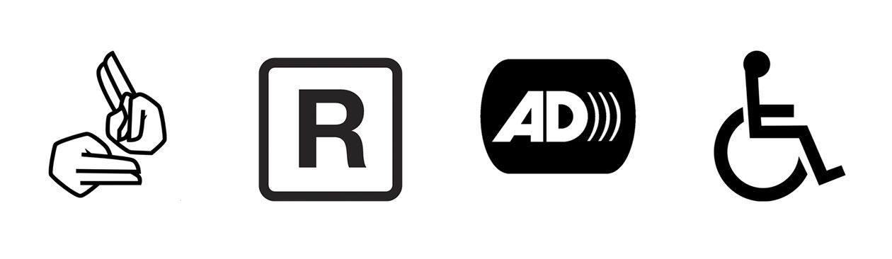 Icons for sign language interpreted, relaxed, audio described and wheelchair accessible.